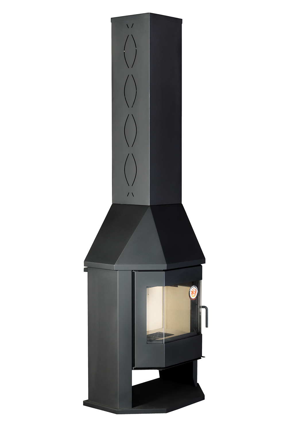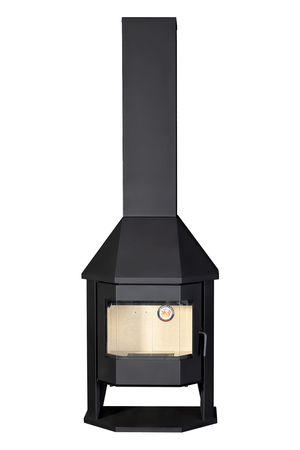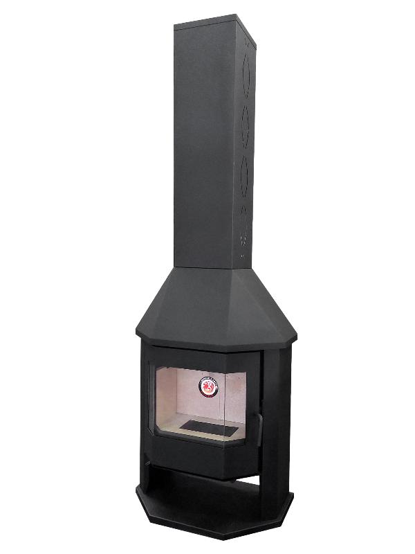 Печь-камин Бавария Мюнхен Гигант предназначен для обогрева помещения объемом до 300 куб. м. Она изготовлена из металла, но внутри топка выложена шамотным кирпичом. С одной стороны, шамот защищает металлические стенки от прогорания, с другой - не дает теплу уходить, повышая качество сгорания дров. Мюнхен Гигант можно назвать полноценным камином. Призматическая дверца позволяет наблюдать за огнём с разных точек комнаты. А металлический кожух скрывает дымоход, если он походит внутри дома. Топочная дверка с большим жаростойким стеклом позволяет наблюдать за тем как горят дрова. Стекло не будет коптиться при нормальной тяге и использовании сухих дров.